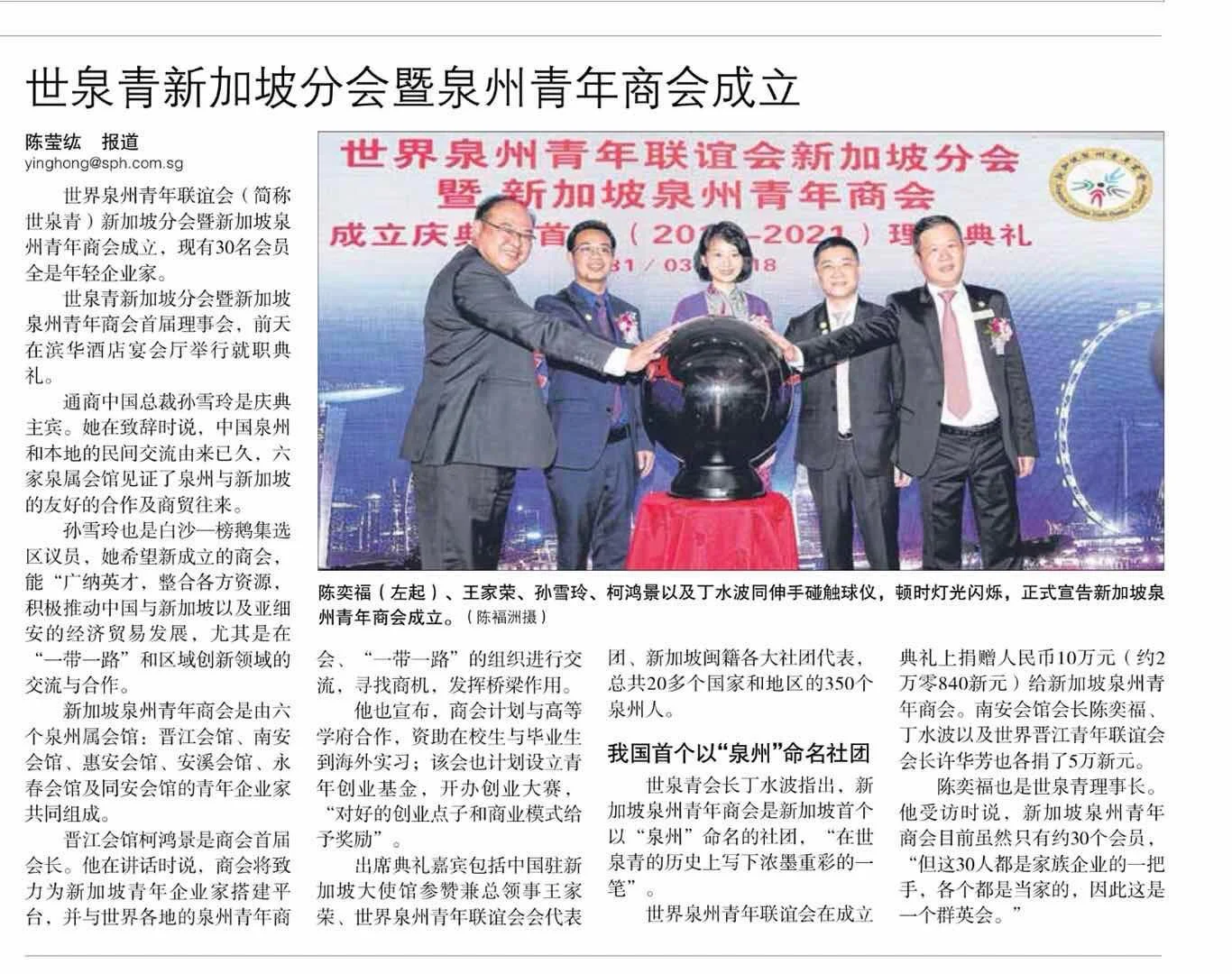 首届就职典礼:亮灯仪式、《联合早报》报道