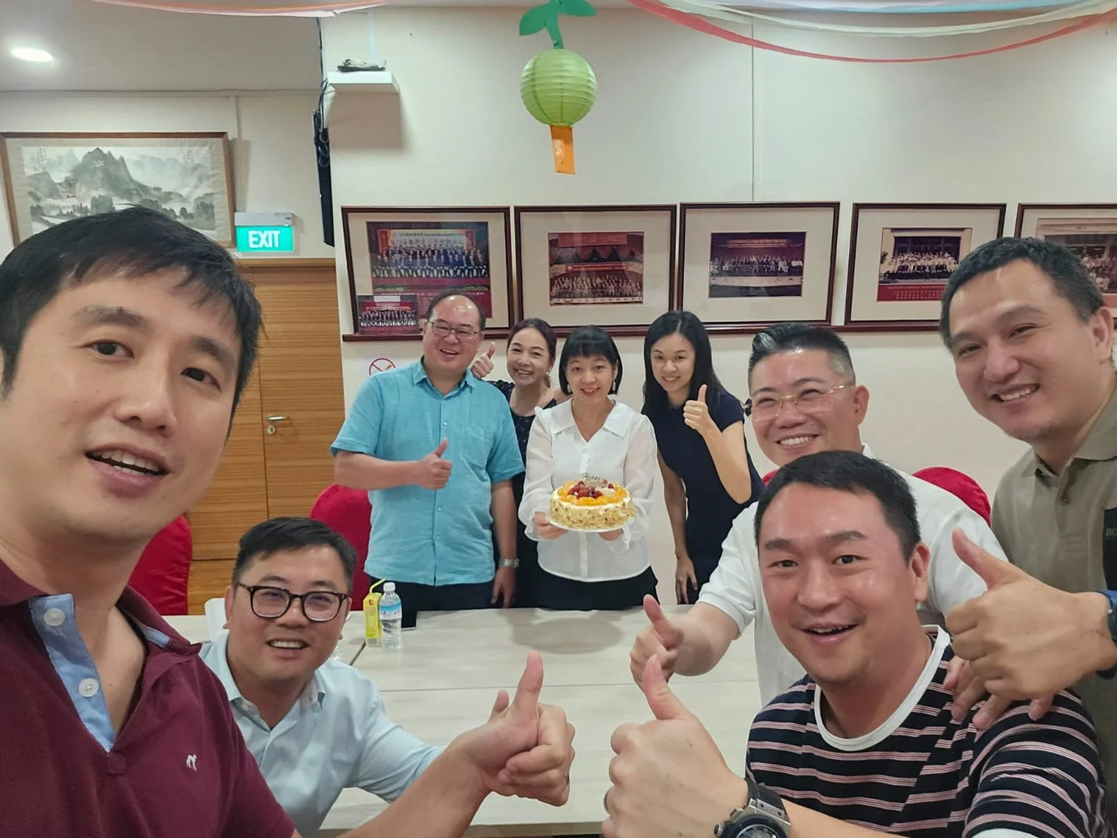 新春团拜与泉属会馆领导合影、会长与副会长向陈奕福顾问拜年